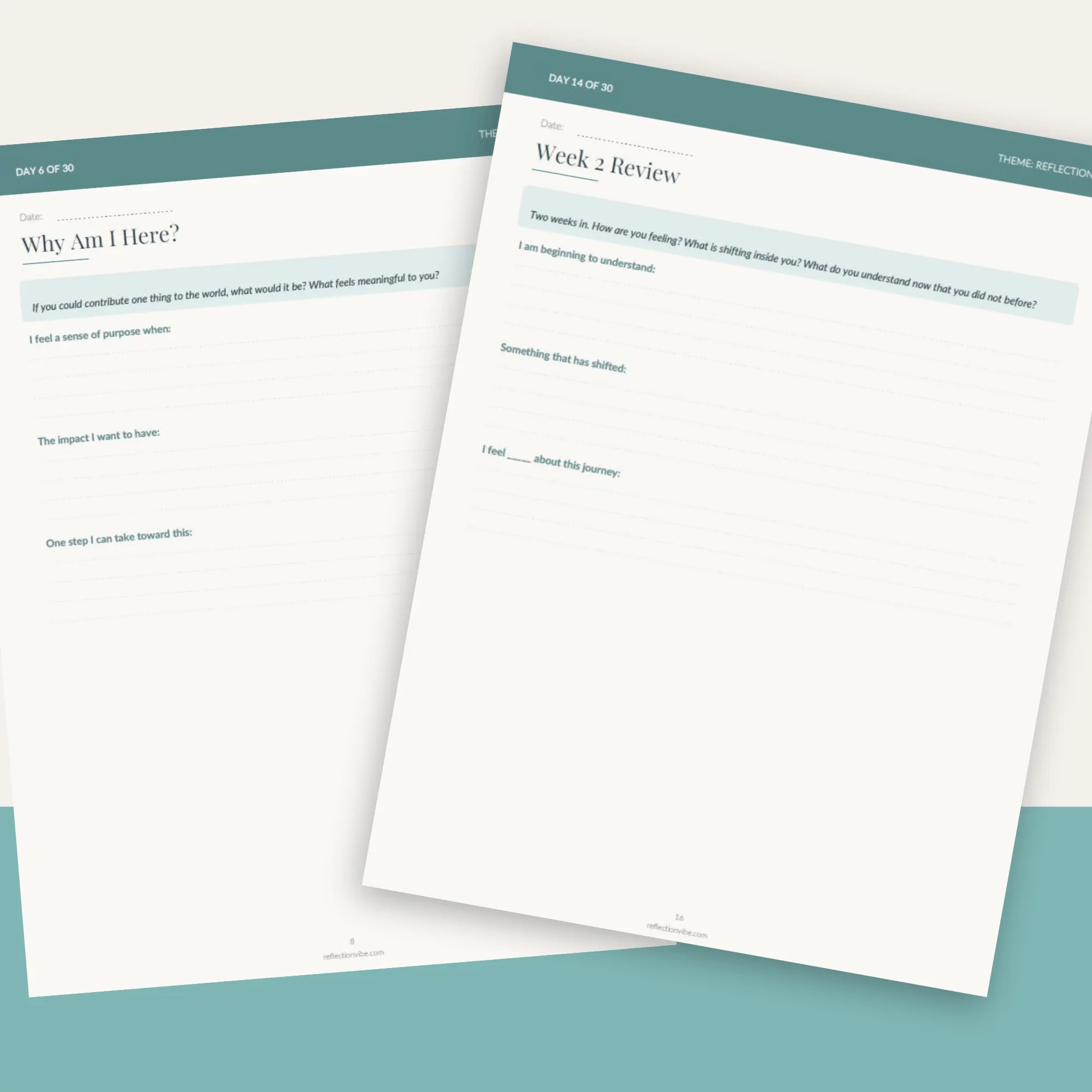 One prompt per day. Give yourself at least 15 to 20 minutes of quiet time. Be honest — no one will read this but you. Every seven days, use the weekly review page to integrate your insights.